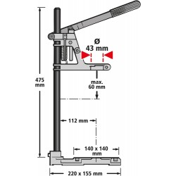 Soporte de taladro con columna redonda + mordaza de regalo, 160 x 230 x 500 mm.