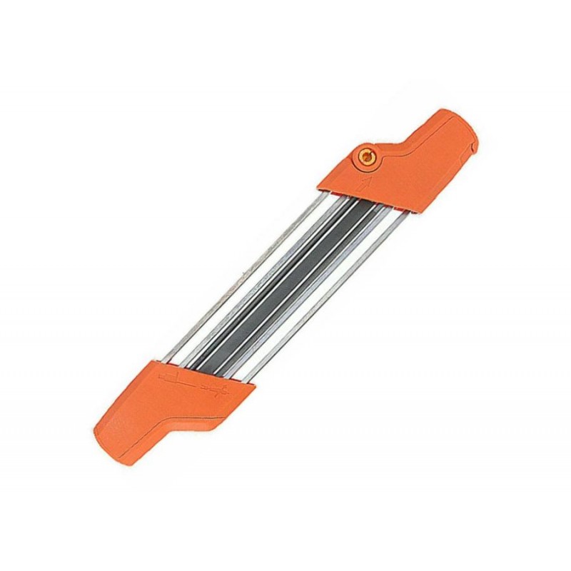 El afilador manual todo en uno no solo te ayuda a mantener el ángulo de afilado correcto, sino también rebaja la guía de profundidad a la medida adecuada al mismo tiempo que afilas el diente de corte. Con sus 2 mangos de agarre y las guías de ángulo visuales afilaras la cadena de tu motosierra en tiempo récord y mejor que nunca.