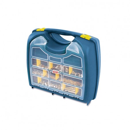 Su característica más destacada son los 20 separadores móviles de color amarillo, que permiten una personalización completa del interior. Esta flexibilidad de organización facilita mantener tus herramientas en orden y fácilmente accesibles.
