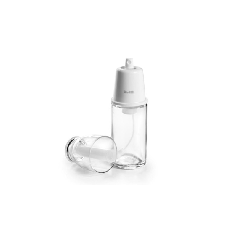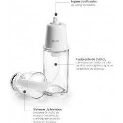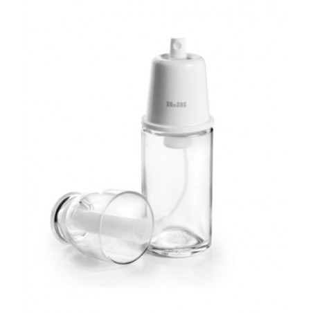 Cómodo spray fabricado en borosilicato, ideal para aliñar las ensaladas de manera limpia y uniforme.