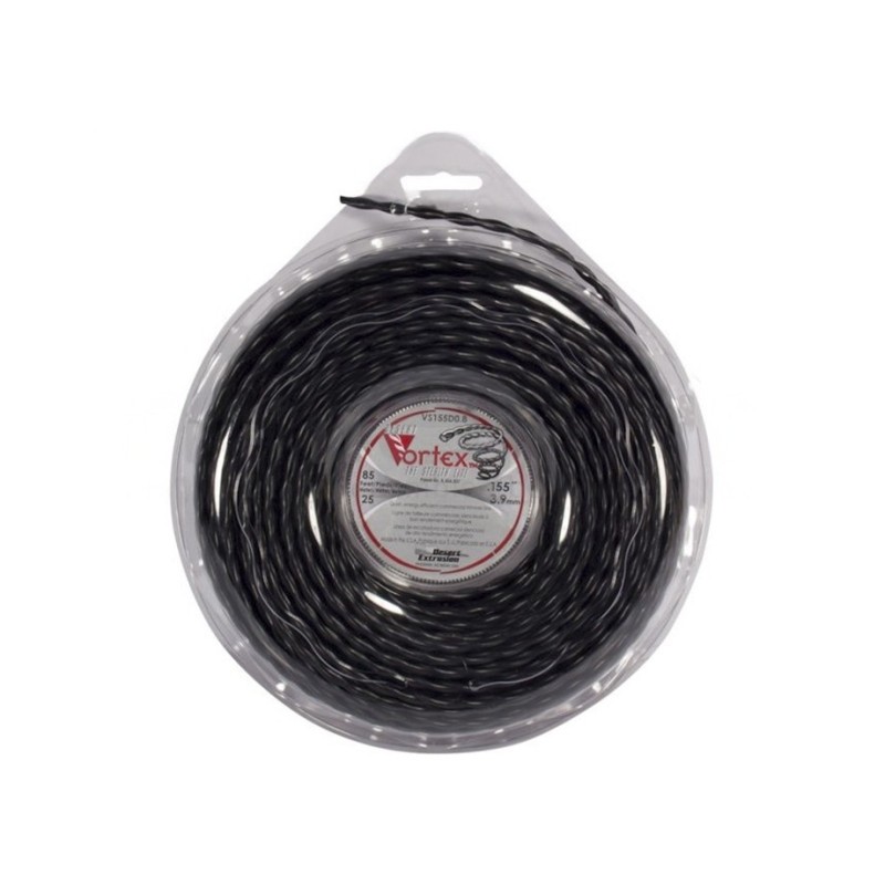 Hilo de corte trenzado VORTEX trenzado 3.9 mm x 25 m con innovadora forma helicoidal que permite realizar un trabajo eficiente con un bajo nivel de ruido.