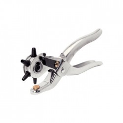 Aplicaciones: Cuero, tejido y plásticos. Fácil de usar. Acabado cromo. Cabezal pivotante para seleccionar el mejor diámetro. Diámetro de punción de 2,5 a 4,5 mm. Partes de metal duro.