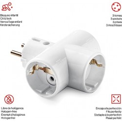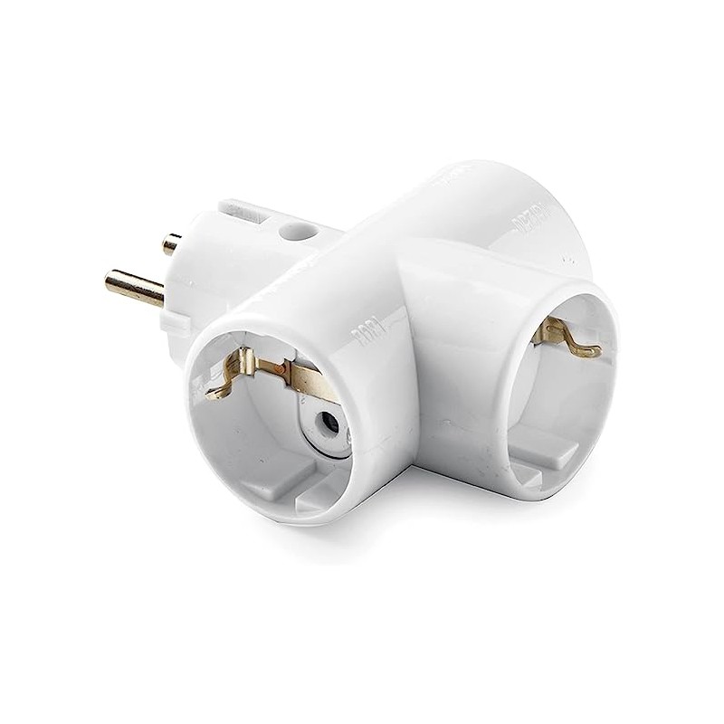 Adaptador triple | Cerámica reforzado | Toma de Tierra (TT) | 16A | 250V
