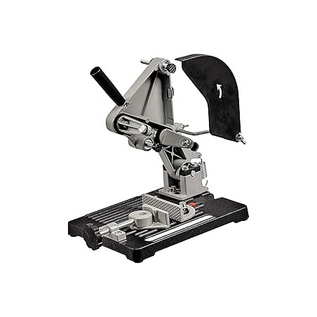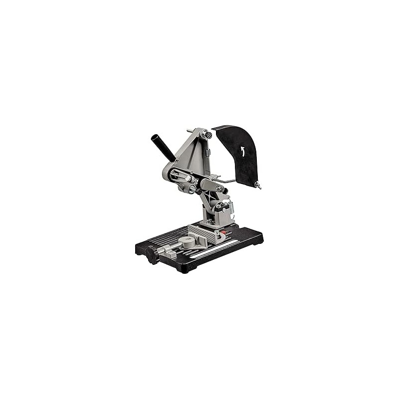 El soporte de hierro fundido está equipado con una articulación giratoria robusta y un alivio de resorte. El tensor de pieza de trabajo ajustable también permite cortes angulares prácticos. La protección contra chispas garantiza la máxima seguridad del usuario.