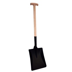 Pala cuadrada con mango muleta de madera y hoja de acero templado.