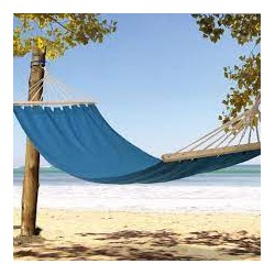 Hamaca de exterior con barras de madera y cuerda natural.