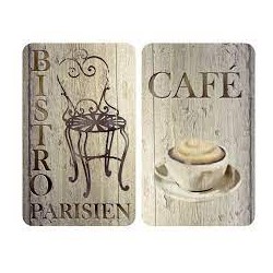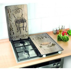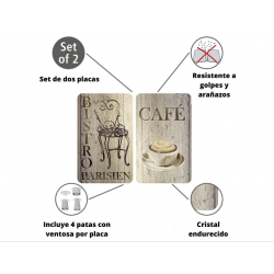 2 Tablas de vidrio templado (4mm). 4 pies antideslizantes para cocinas vitrocerámicas, eléctricas y de gas. Uso práctimente universal. Incolora, higiénica, inodora, resistente a los rasguños y golpes. Resistente hasta 200º.