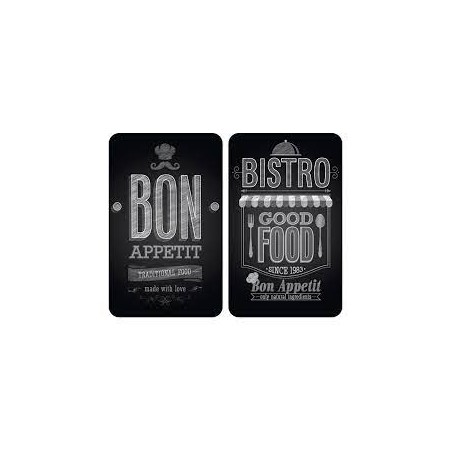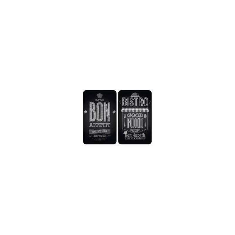 2 Tablas de vidrio templado (4mm). 4 pies antideslizantes para cocinas vitrocerámicas, eléctricas y de gas. Uso práctimente universal. Incolora, higiénica, inodora, resistente a los rasguños y golpes. Resistente hasta 200º.