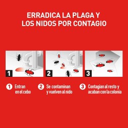 • Cebo compuesto por un gel que atrae a las cucarachas, actuando como trampa para envenenarlas y acabar con la colonia.