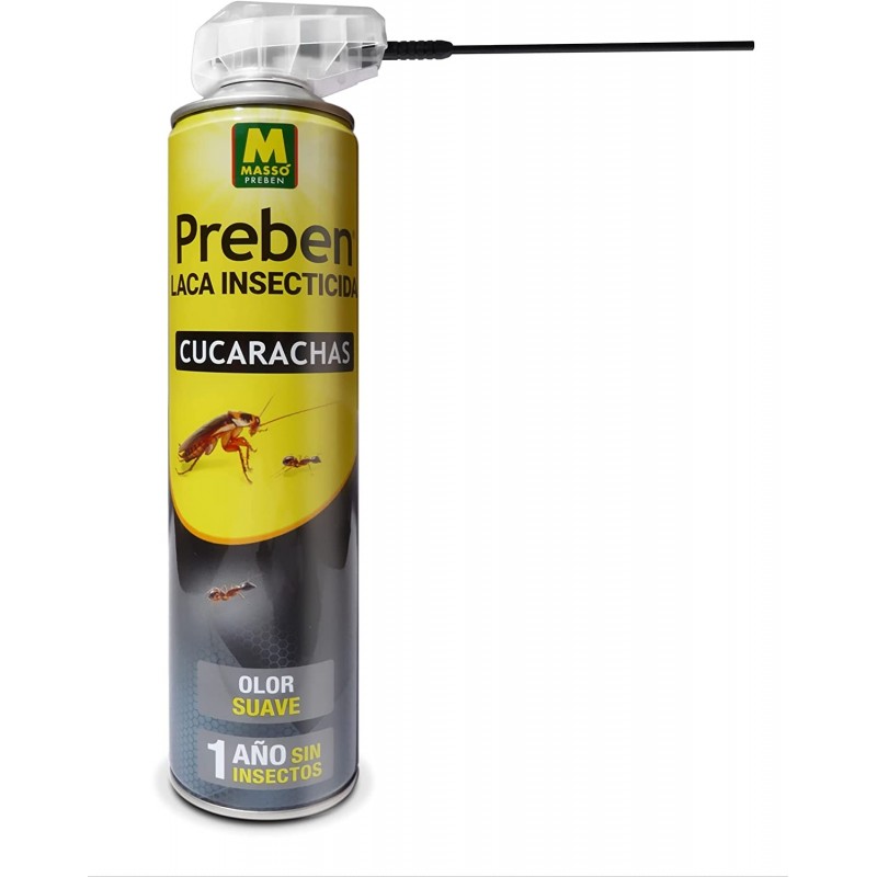 Laca insecticida envasada en aerosol y especialmente indicada para el control de cucarachas, hormigas, tijeretas, lepismas (pececillos de plata), arañas y demás insectos rastreros.