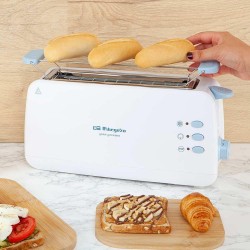 Tostadora de ranura larga, calienta panecillos, 7 niveles de tostado, función descongelación y recalentamiento, bandeja recogemigas, 850 W.