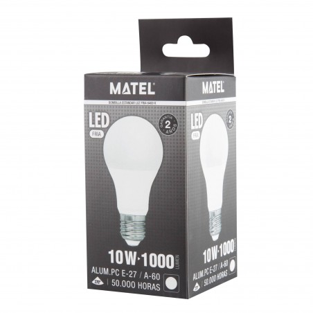 Bombilla led standard E27 10w luz Fría ref.21813, 1000lm, clasificación A+, ahorro del 90% de energía, hasta 50.000 horas de rendimiento