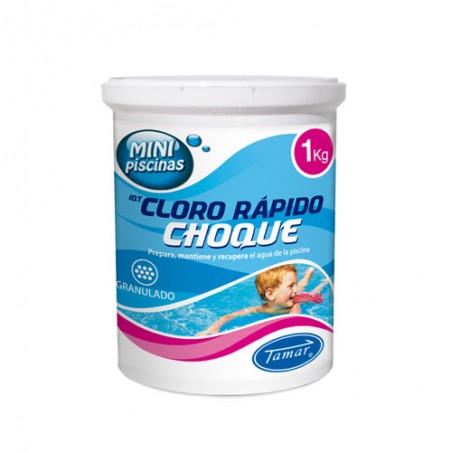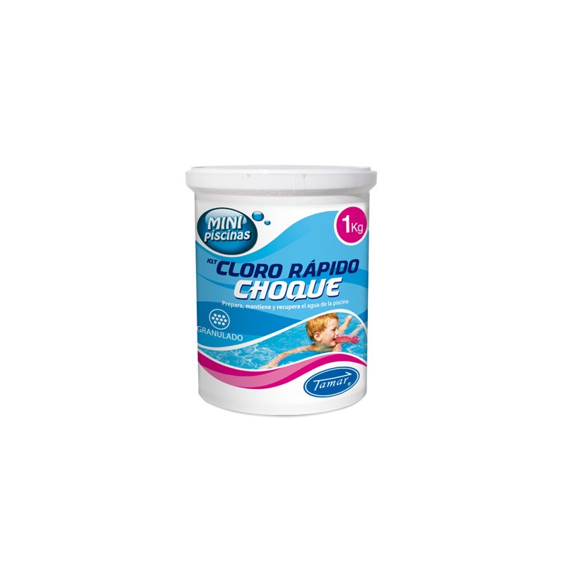 Cloro en grano de acción rápida, ideal para hacer el primer tratamiento de desinfección del agua de la piscina y recuperar aguas deterioradas o turbias.